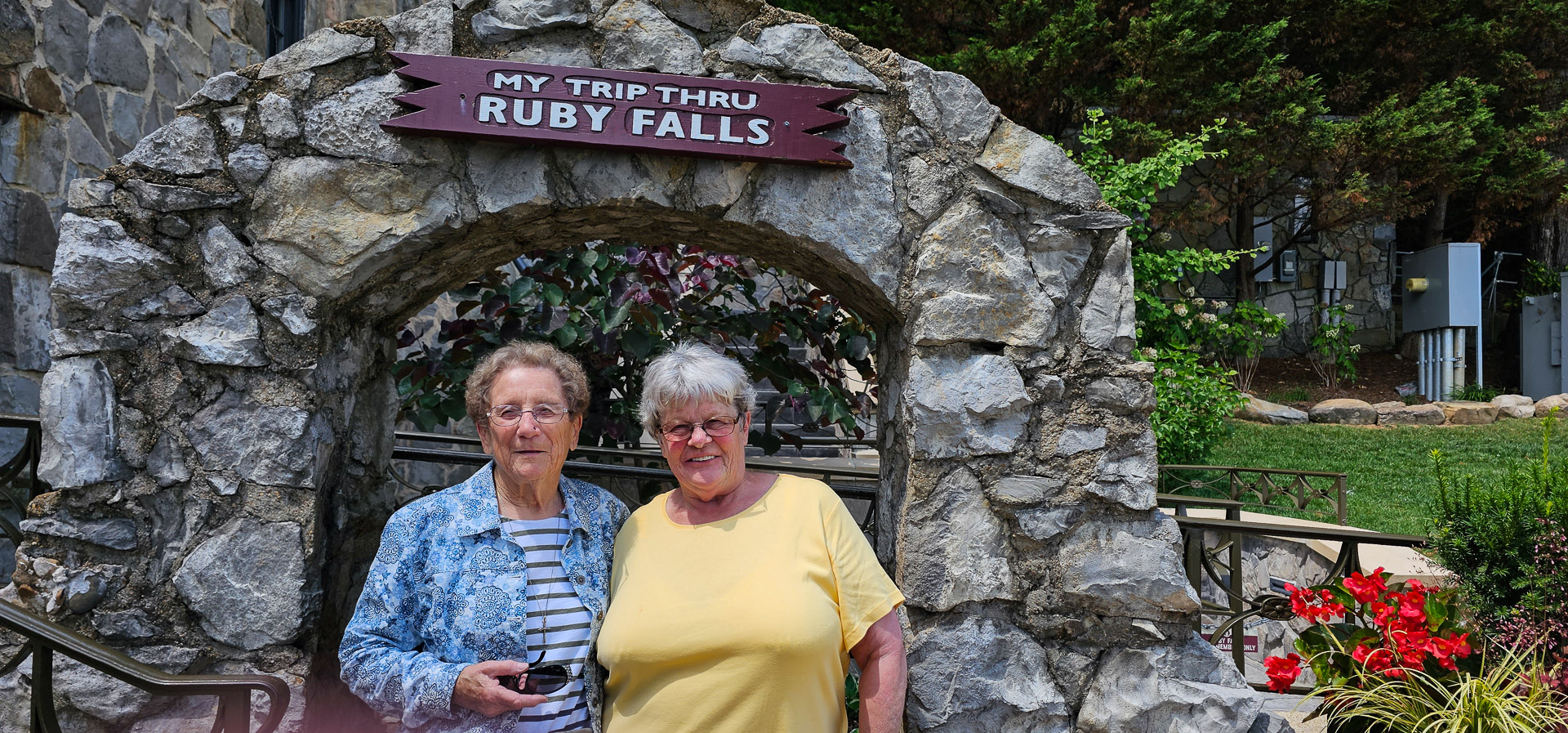 We expect to arrive at Ruby Falls around 10:45 AM (ET) with a planned visit of about 2.5 hours.
